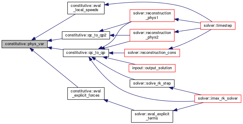 The physical variables are those used for the linear reconstruction at the cell interfaces (limiters are applied to the reconstructed slopes) and for the boundary conditions. Please note that the physical variable u is modified according to Eq. 2.17 of K&P 2007 by the call to the subroutine phys_var.